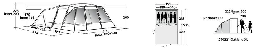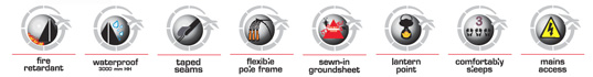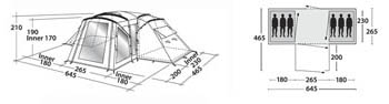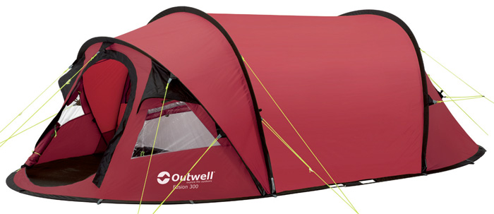 pre-attached luminous guys, heavy-duty Outwell zips, and a mesh